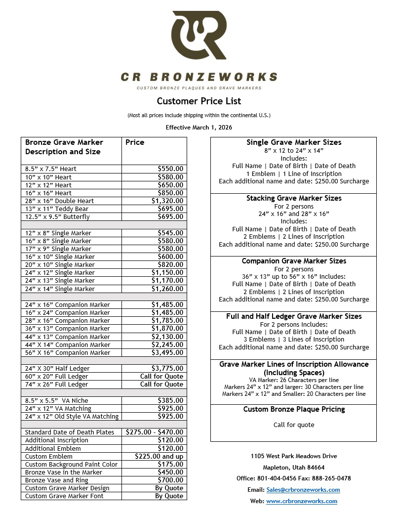 Bronze Grave Marker Pricing with CR Bronzeworks